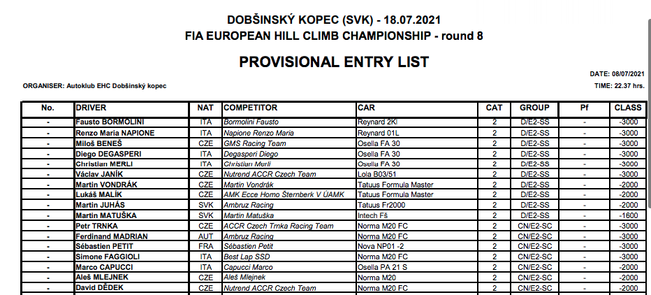 Dobsinsky kopec (Slovaquie)les 17/18 juillet, liste provisoire, avec un groupe 5 superbement fourni, enfin des pilotes locaux qui ont compris le système! mais malheureusement aussi un groupe 1 un fois de plus très faible en nombre.