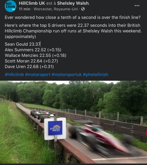 toutefois au général c'étaient toujours les monoplaces françaises qui l'emportaient à Turckheim, gommant leur handicap du bas sur les parties plus sinueuses du parcoursDaniel de Besançon a écrit : mar. 4 mai 2021 20:01 Je pense que pWe est dans le vrai et certains se posaient des questions car atteindre une telle vitesse voulait dire avoir une 5 relativement longue ce qui devenait pénalisant dans le haut du parcours. C'était surement le bon choix (une grande vitesse de pointe) pour avoir un bon chrono car les italiens étaient devant.