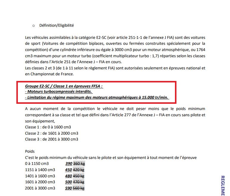 :? Pas exactement...il y a une limitation de régime à 15000 trs/min pour la classe 1 du E2-SC, et en ce qui concerne le groupe E2-SC en général il est dit qu'il est fait application de l'annexe 8 en cours sans pour autant expliciter clairement que les atmos seront dispensés de la limitation de régime comprise dans cet annexe :roll:...