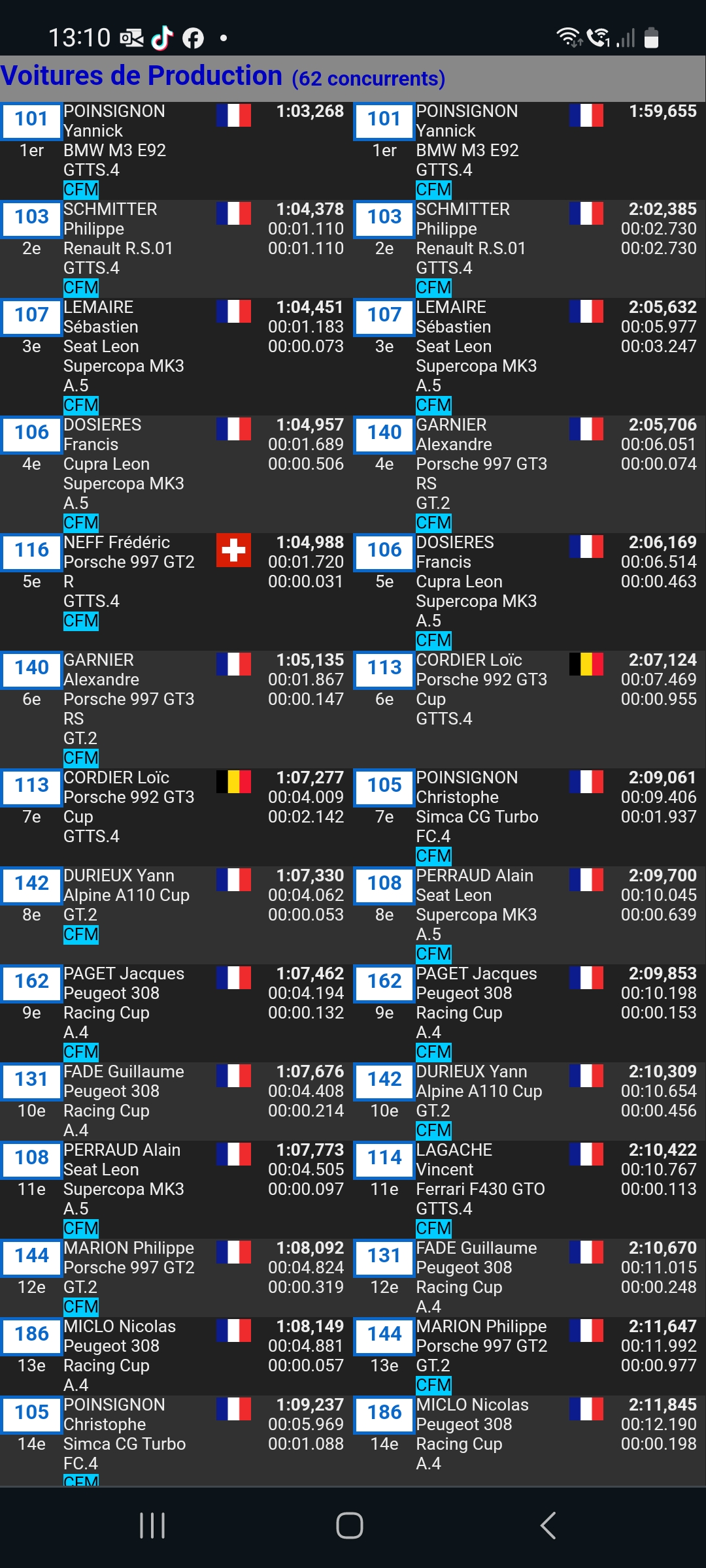 Marc Pernot signe le meilleur temps de la 2ème montée de course et prend les commandes de la catégorie #Sport devant Maxime Cotleur et Sébastien Petit, Fabien Bourgeon est quant à lui titulaire du 2ème meilleur temps de la manche.