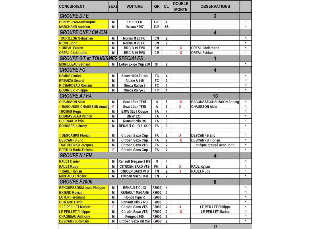 Liste indicative des engagés à la course de côte de Loc-Eguiner 2024