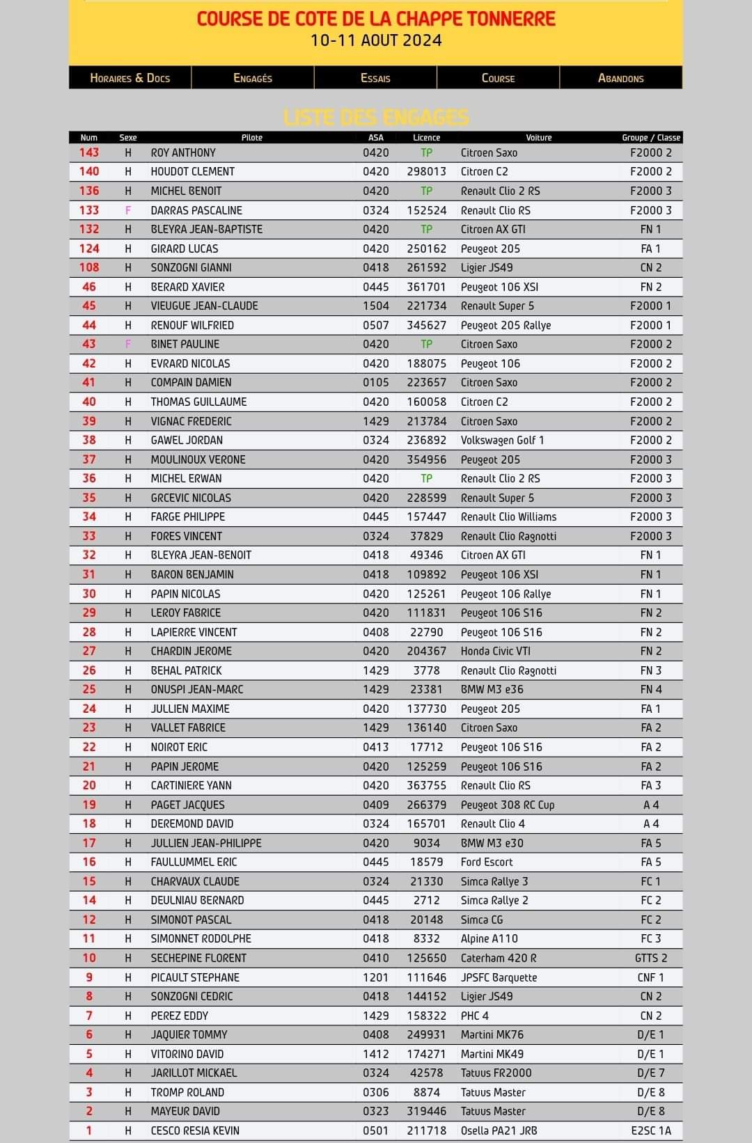 Cest reparti a la Course de Côte de la Chappe-Tonnerre en ce dimanche très ensoleillé pour de nouveaux essais libres, deux essais ssai chrono et les manches chrono officielles