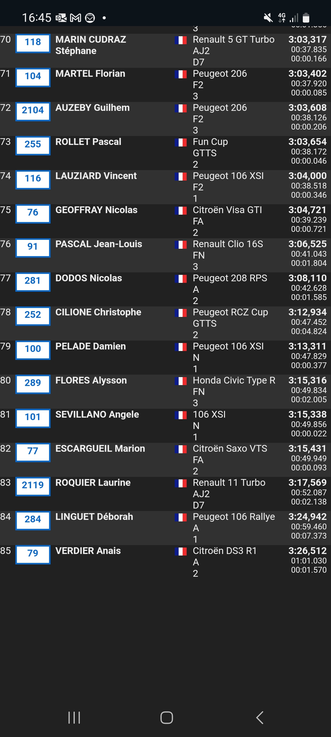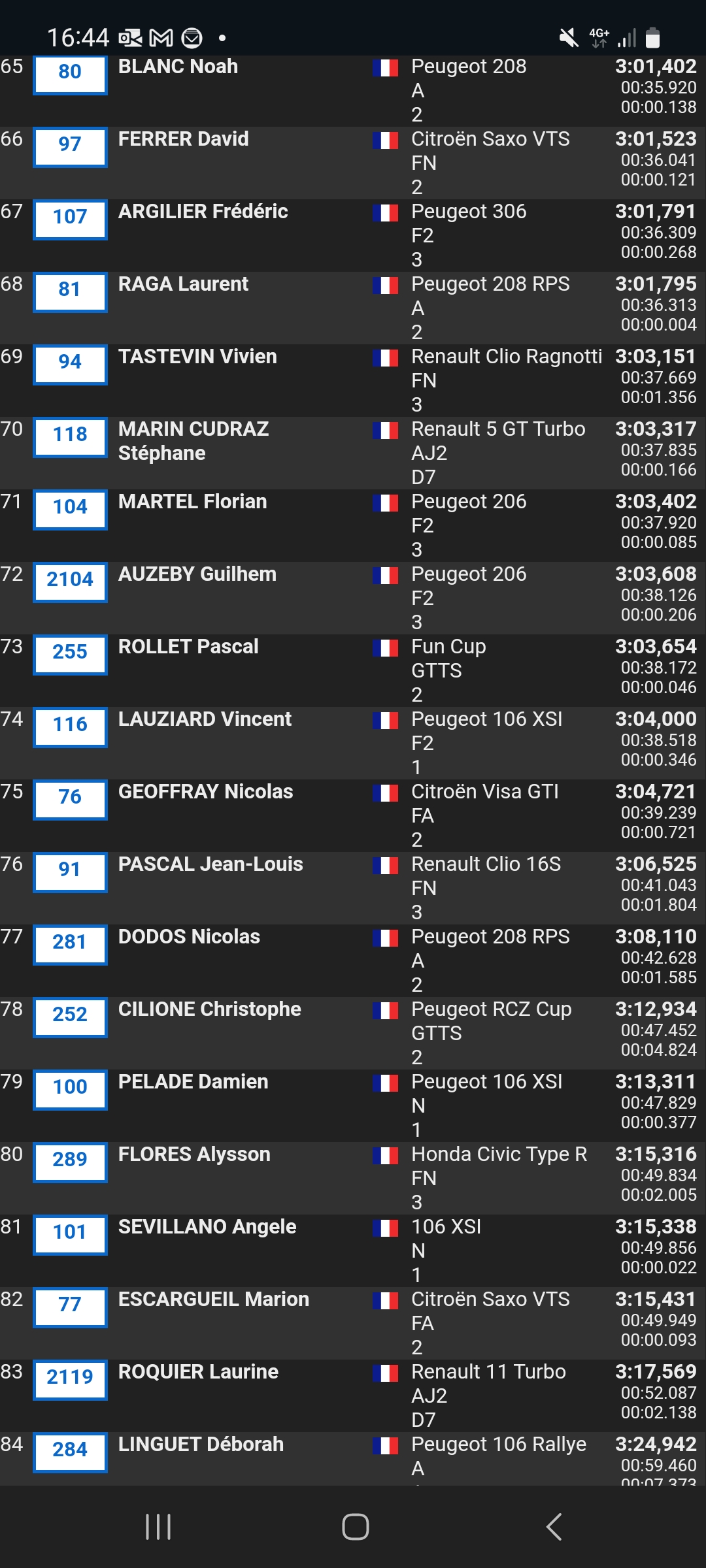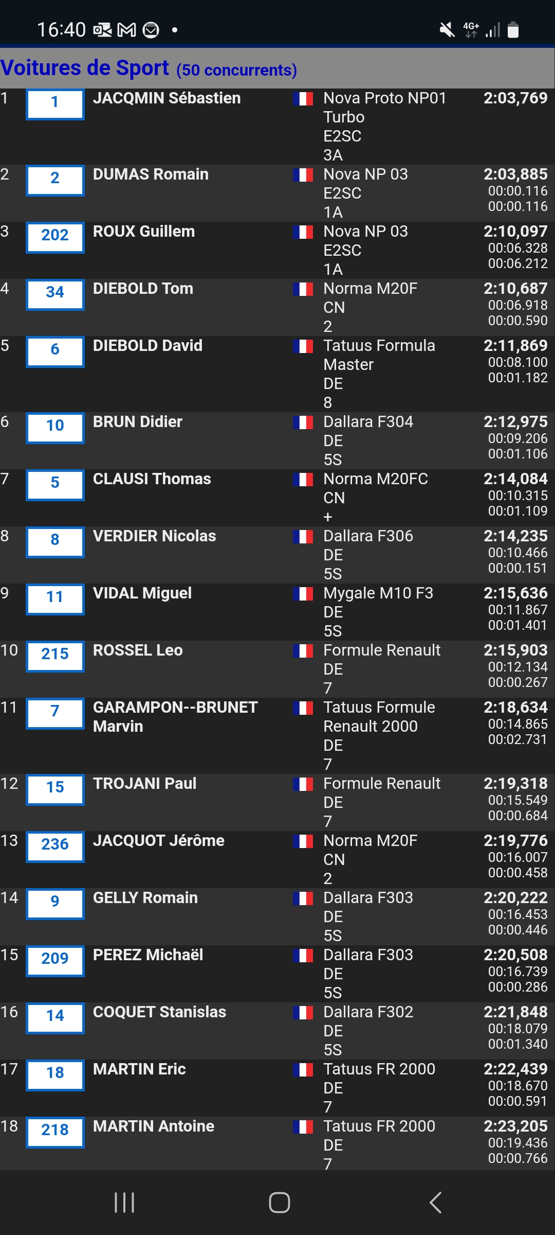 Je fini ce race track en 22 ème position 2 ème de classe au cumul avec même pas une seconde du premier .