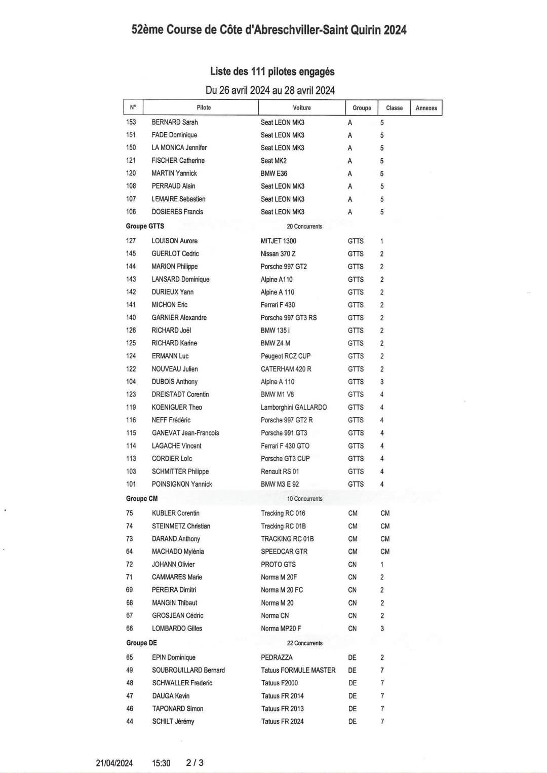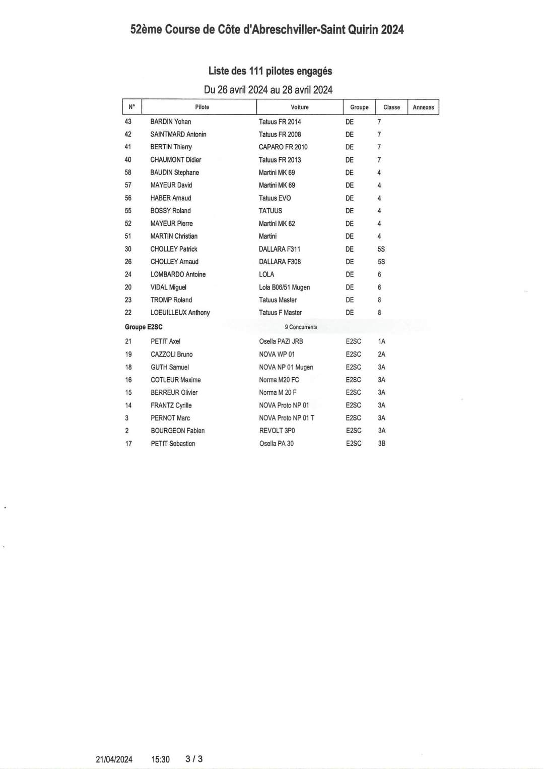 Re: Topic 52ème Course de Côte d'Abreschviller 27 28 avril 2024