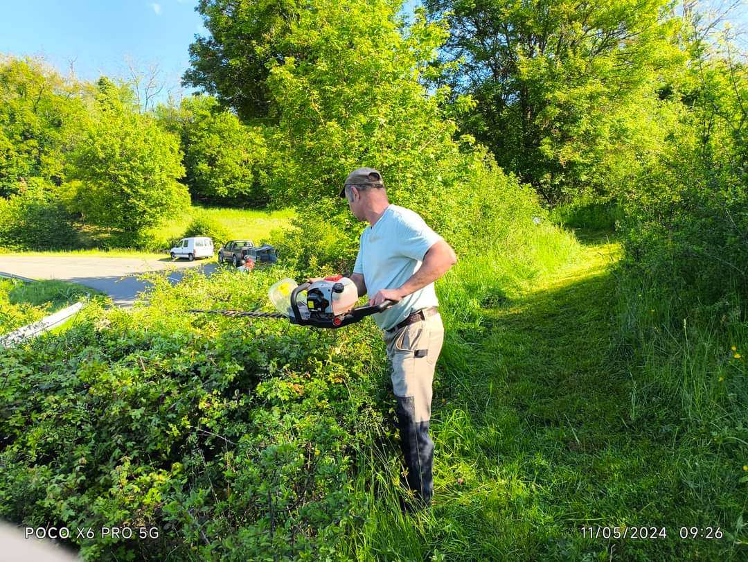 Une petite équipe, mais très pro, du Comité d organisation de la course de côte Azé Donzy est au travail ce matin pour permettre une extension du réseau électrique pour faciliter l organisation de la Course.