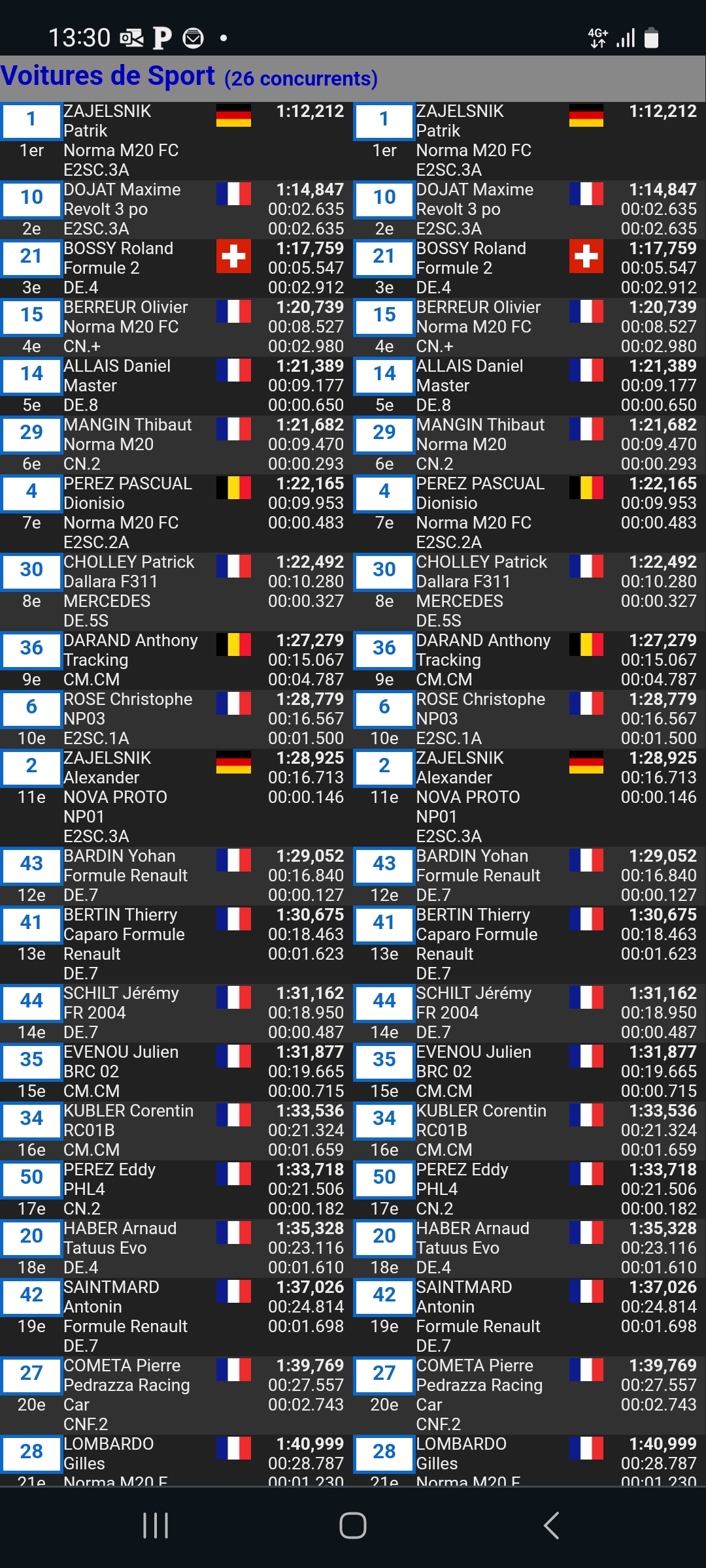 Patrick Zajelsnik et Nicolas Werver n'ont pas démenti les pronostics, vite, même sous la pluie.le classement de la première montée des essais :
