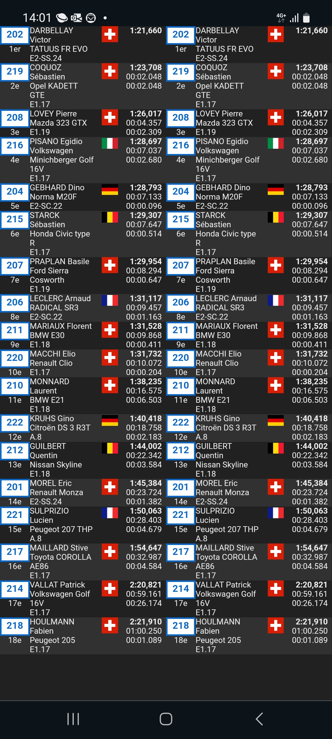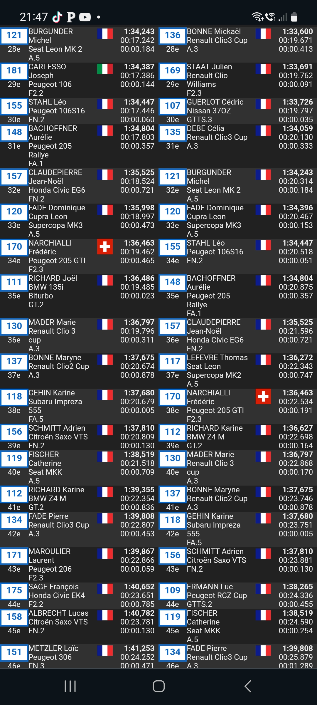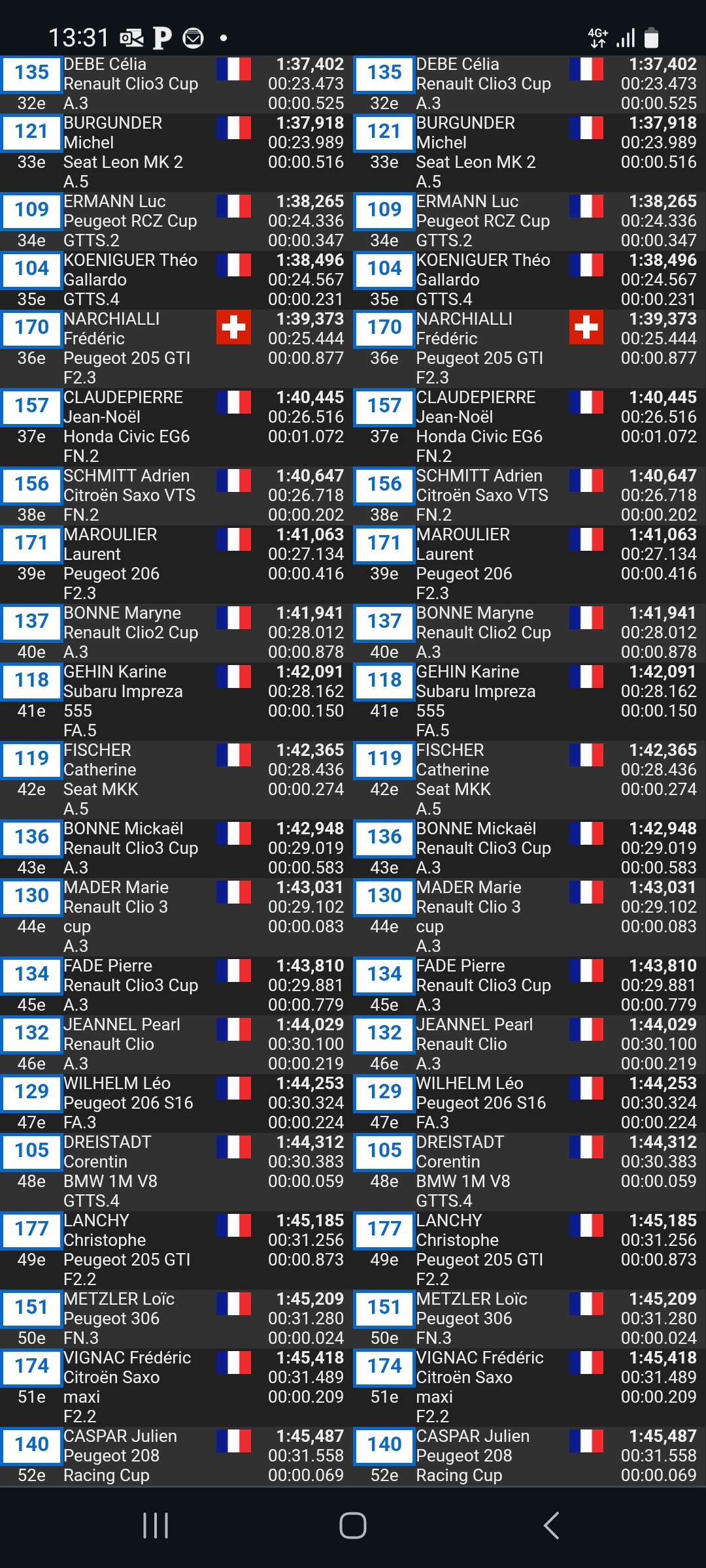 Mauvaise nouvelle, sortie de Loic Cordier, la voiture semble abîmée le pilote s'en extrait seul. Il nous avait fait un très beau passage à la première épingle. Il est sorti juste avant la dernière.