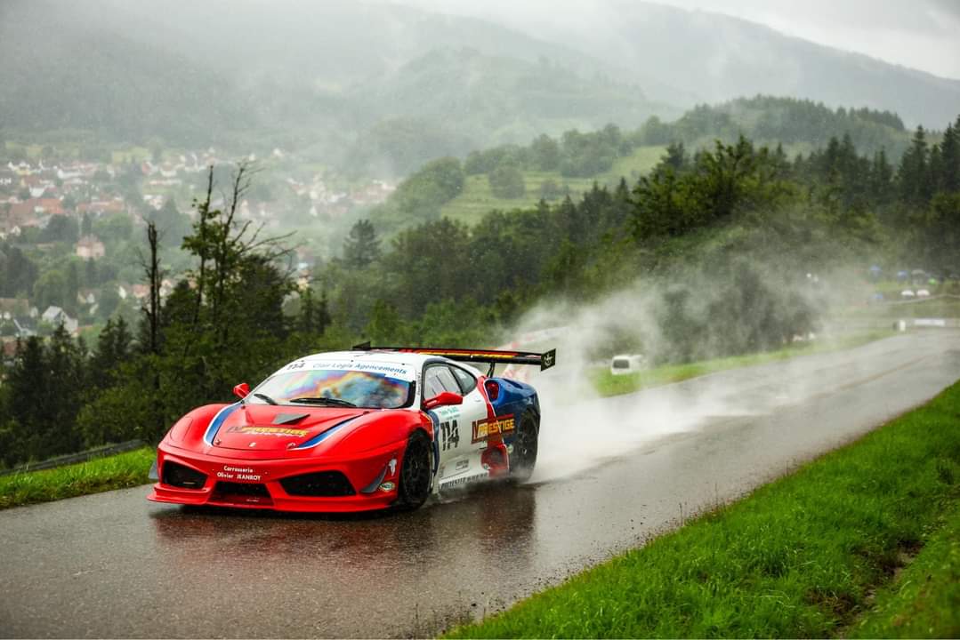 Pluies fortes au début et puis baisse des précipitations pour la montée des voitures ouvertes mais une route glissante. Maxime Dojat nous a gratifié d'une sortie en travers, qui augure d'une belle compétition tout au long du week-end. Bruno Cazzoli a aussi réussi à se sortir de la délicate position à la première l'épingle , mais au dessus, à la dernière, avant l'arrivée, il a fait un tête à queue qui a ossasionné un arrêt de course.