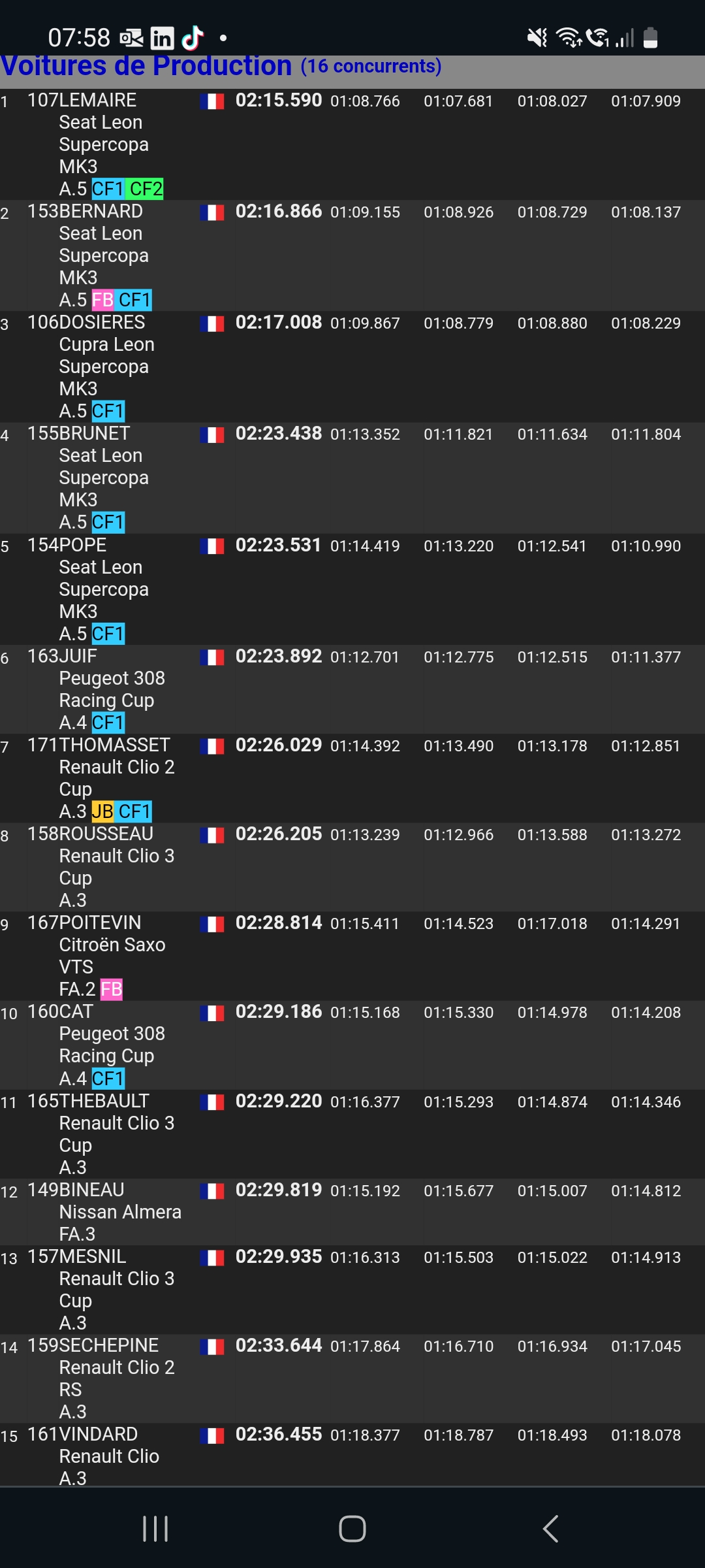 J’ai amélioré mon chrono à chacune de mes montées, mais cela n’a pas suffi ; je m’incline et termine donc quatrième (CFM).
