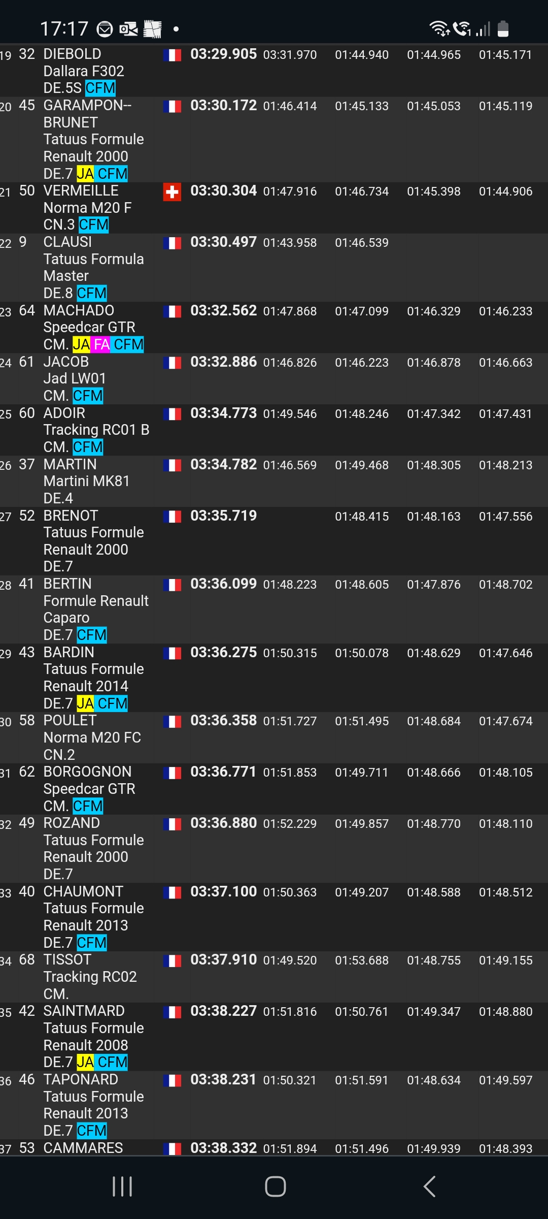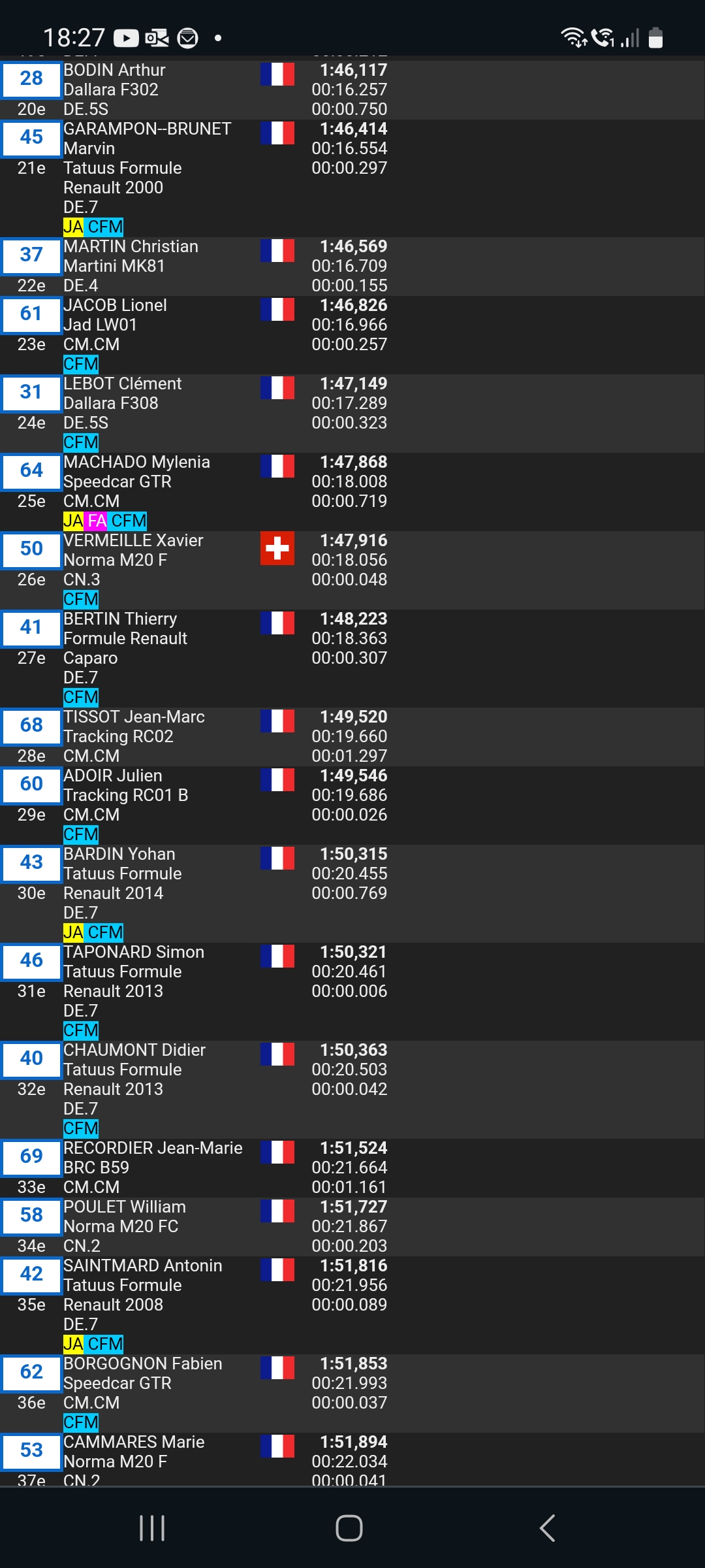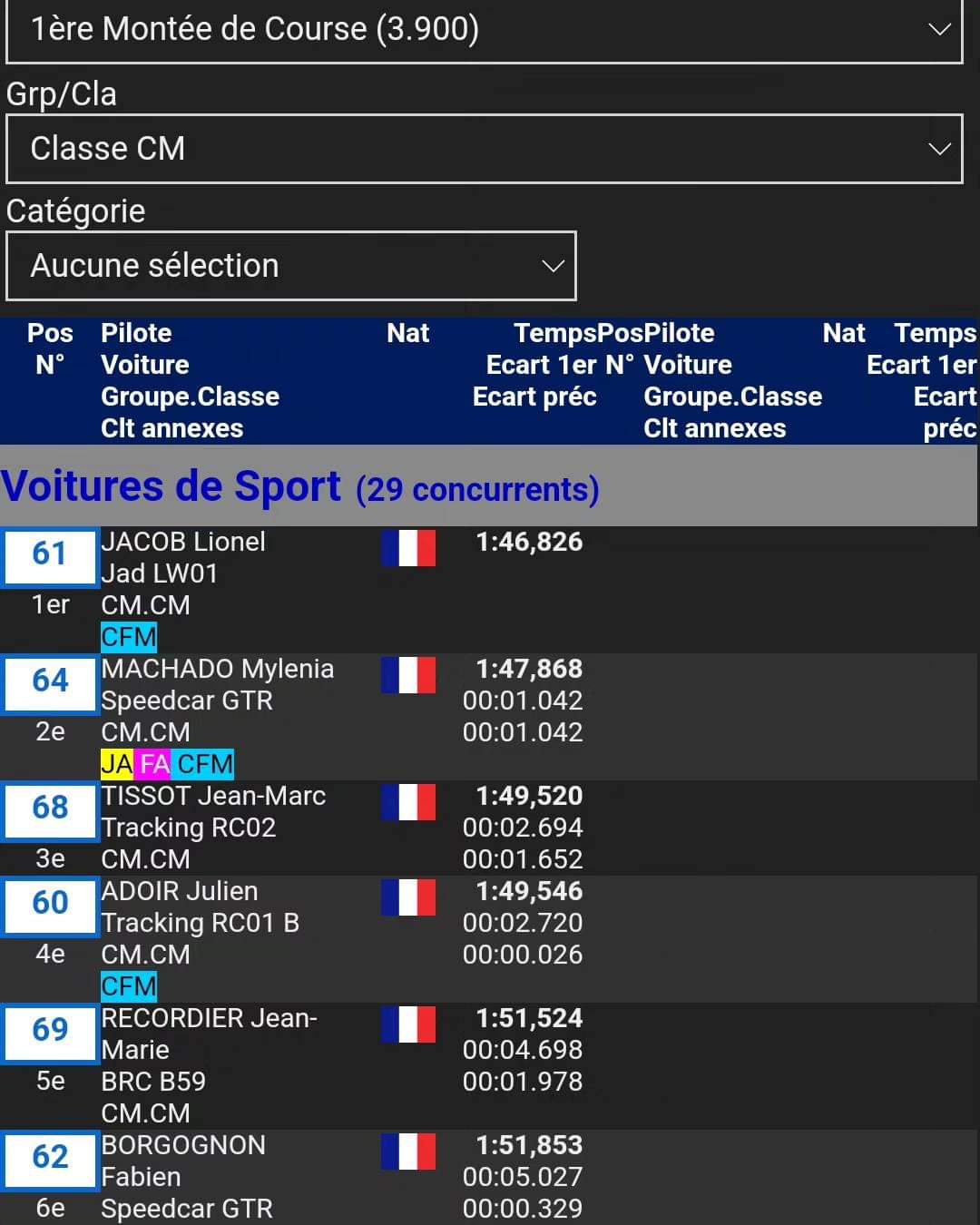 A noter que bien qu'étant isolé (voir "orphelin" de Fab Bourgeon), Marc Pernot réalise un temps lors de la 1° montée de course, à moins de 4 dixièmes de son meilleur temps de 2023 (alors qu'il était en bagarre). Donc bravo à lui de jouer le jeu malgré le manque d'adversité