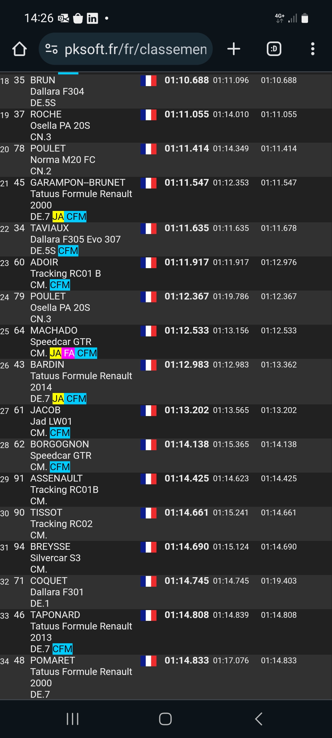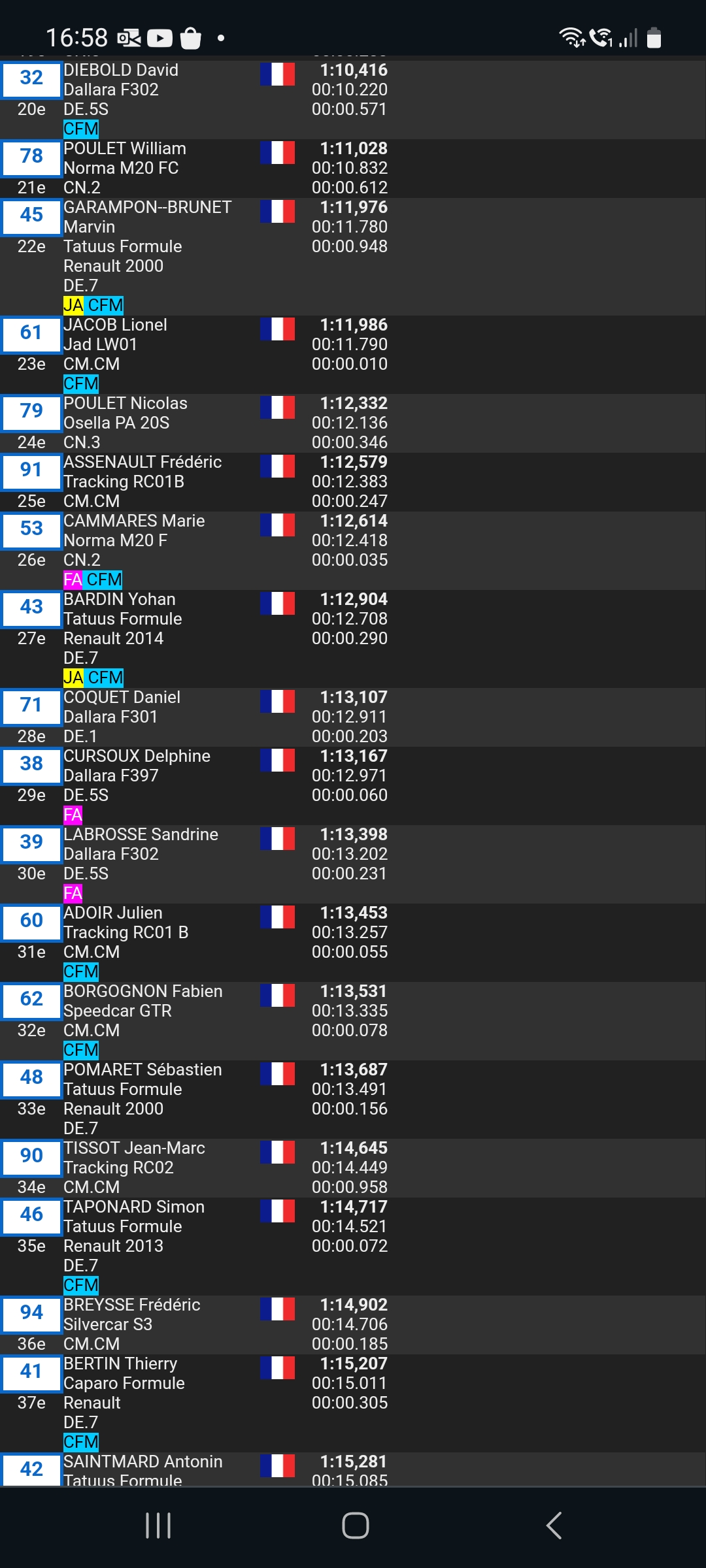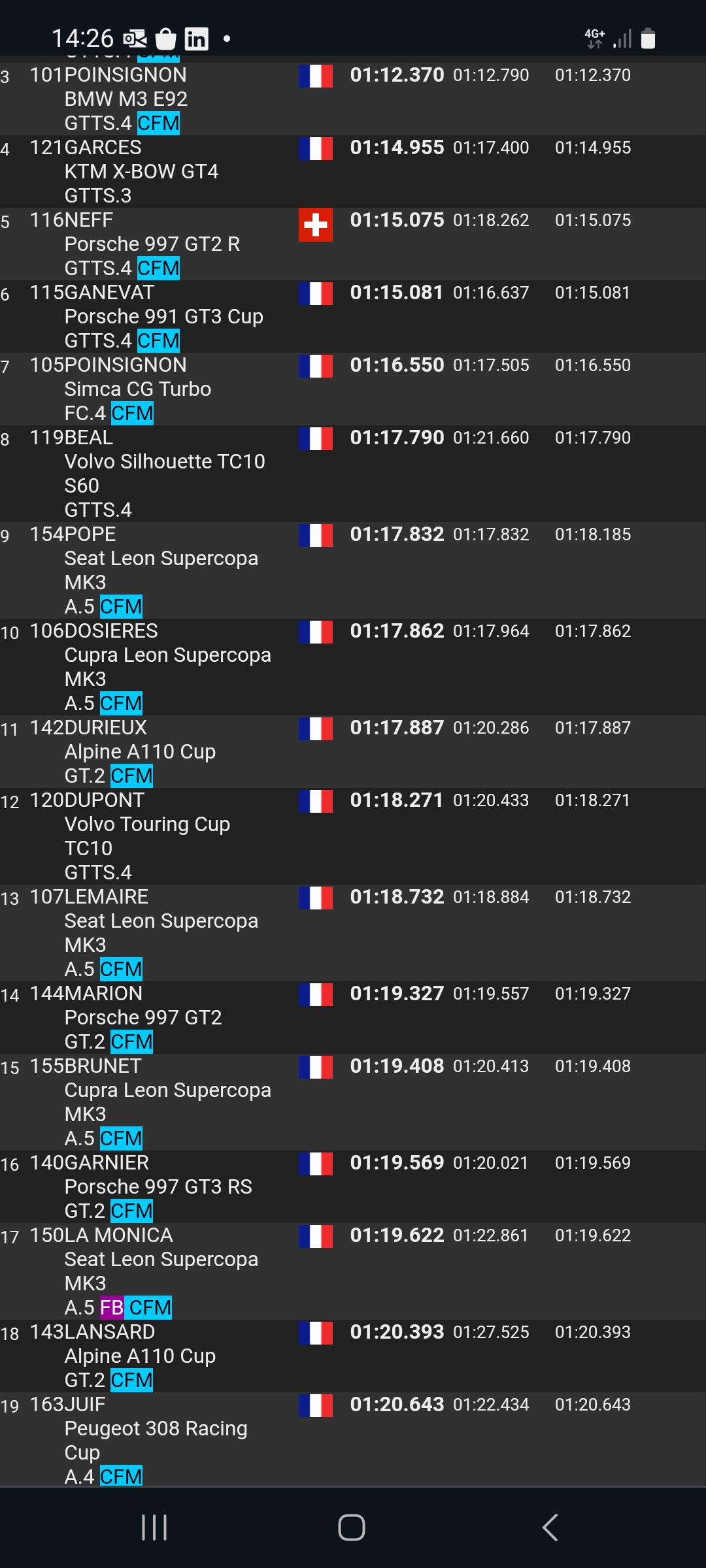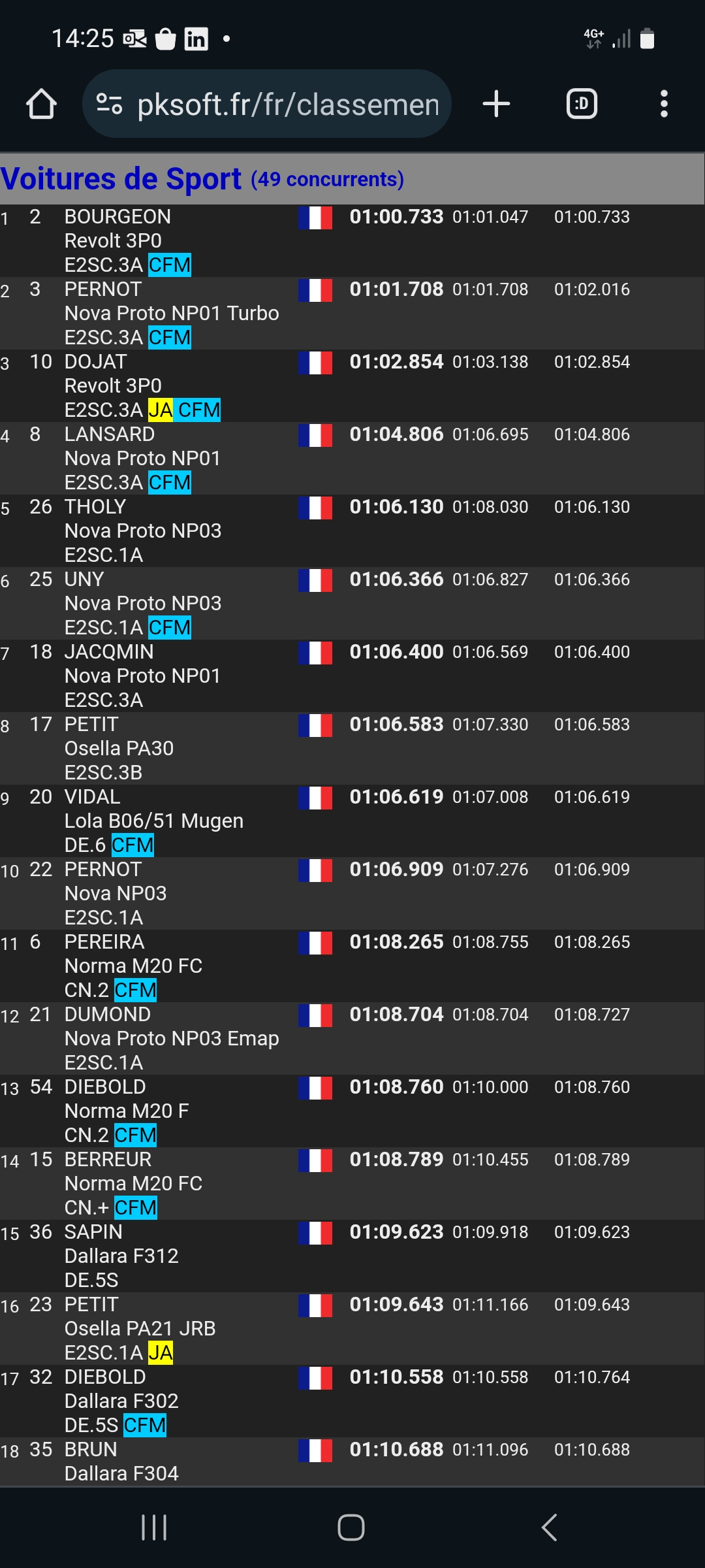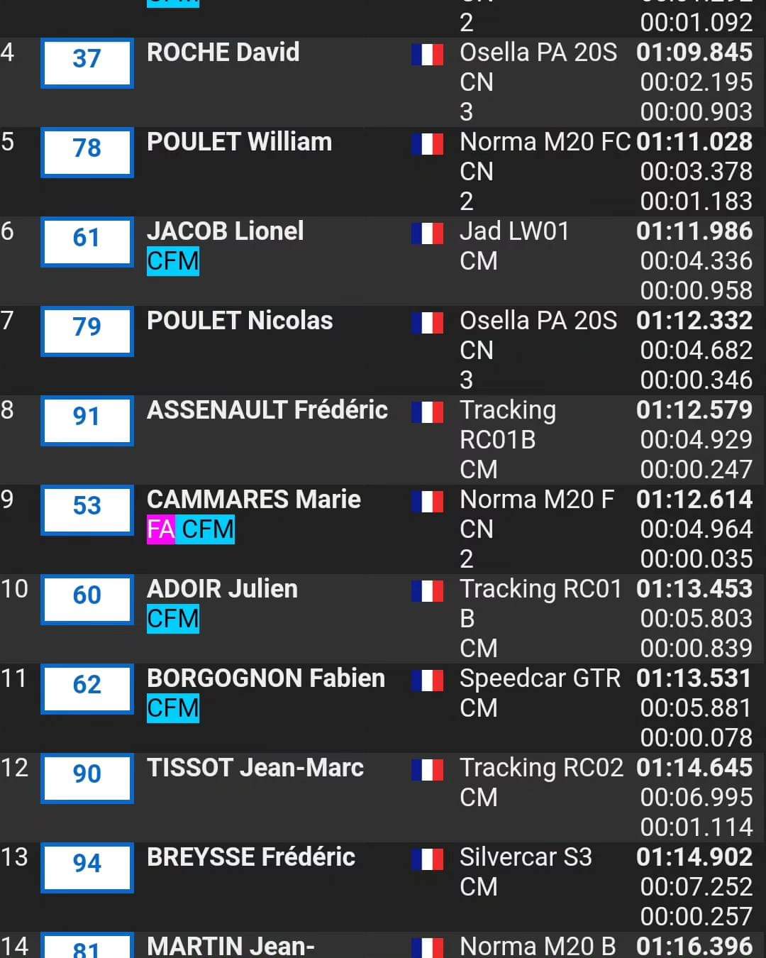 Belle performance de Anthony Dubois en-tête et aussi Ronald Garces intercalé entre les Gtts4 pour sa première en Cfm.