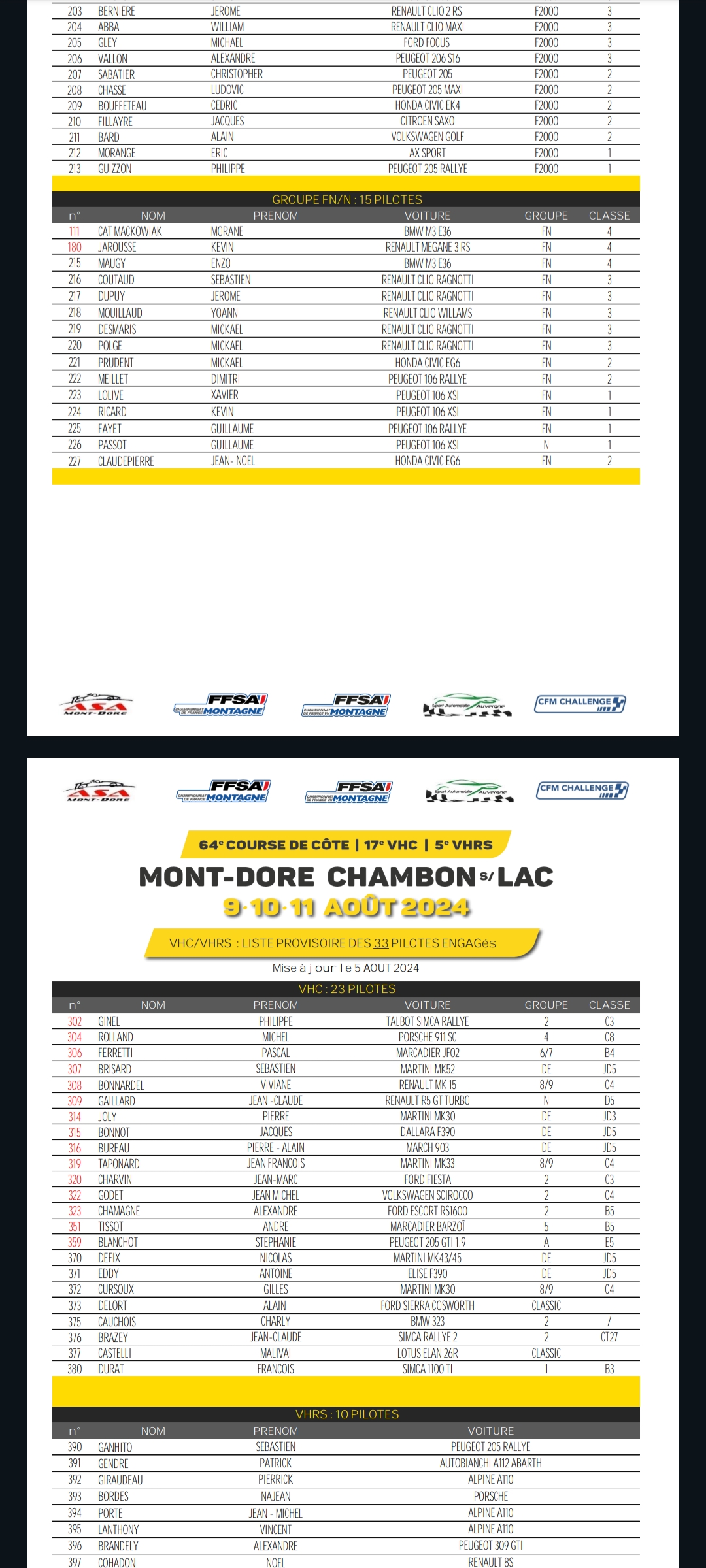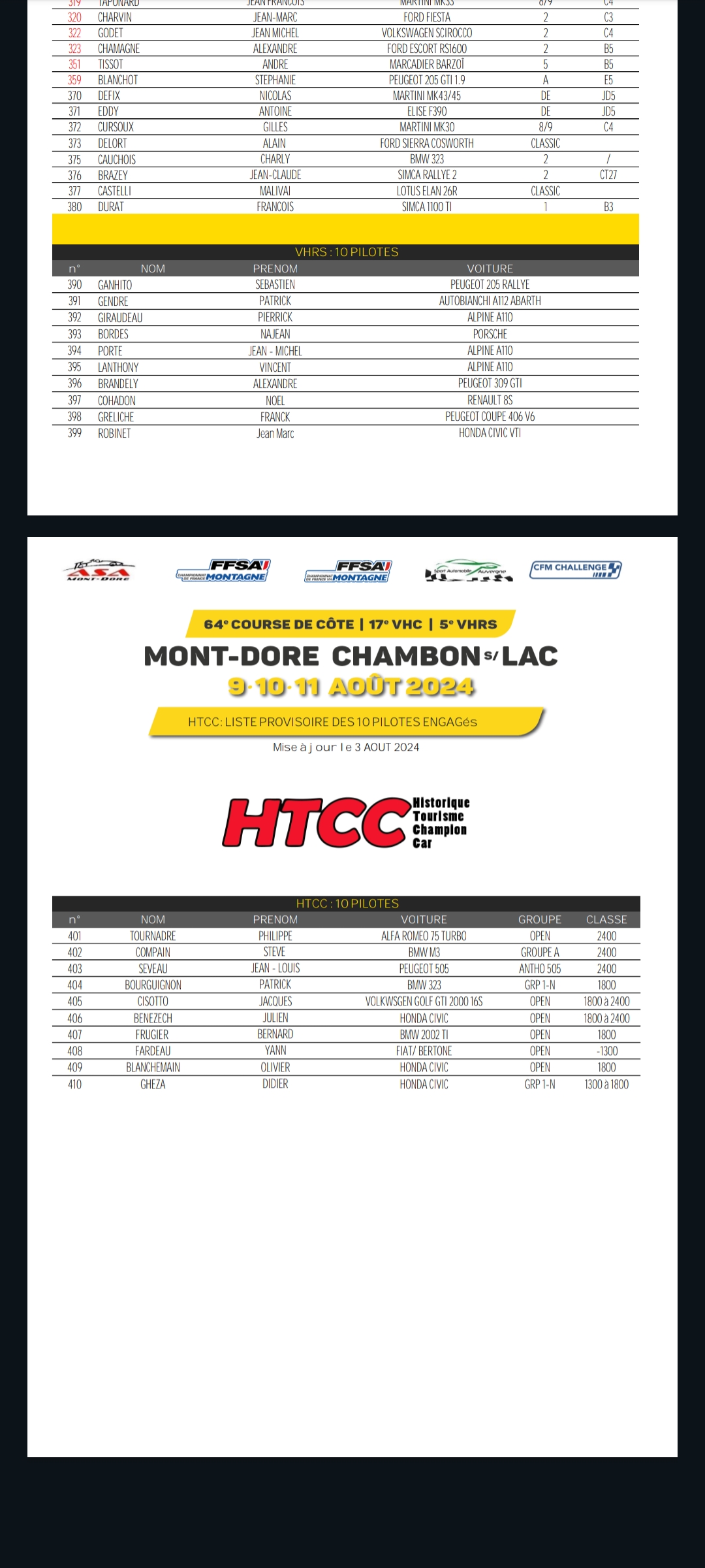 Re: Topic 64éme course de côte du Mont Dore 09 10 11 Août 2024