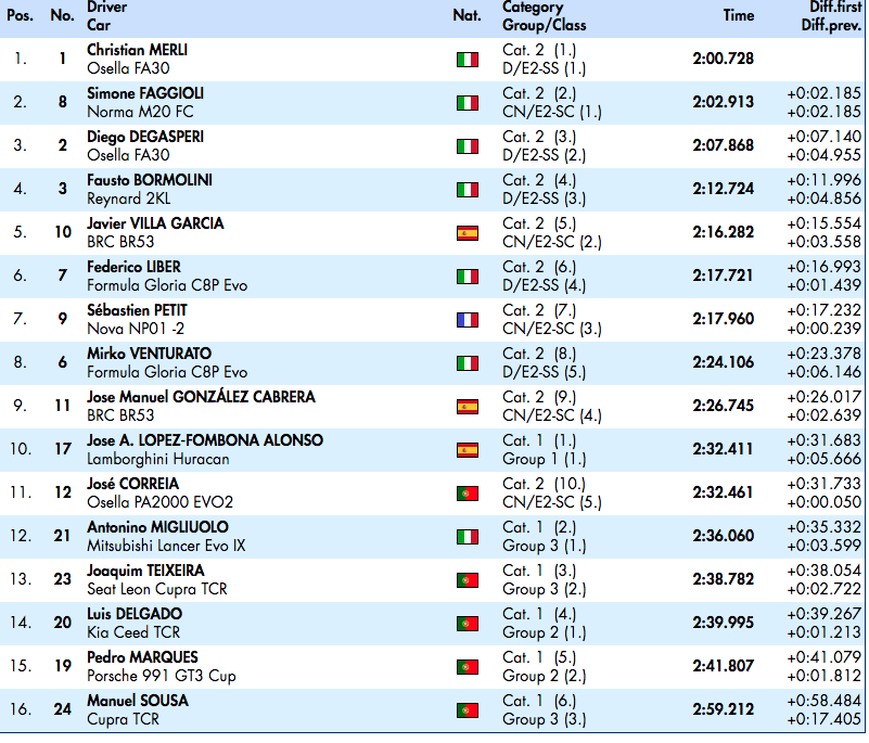 1ère montée de course championnat portugais, joli chrono de Nicolas plus rapide que les chronos d'essai de Ronnie