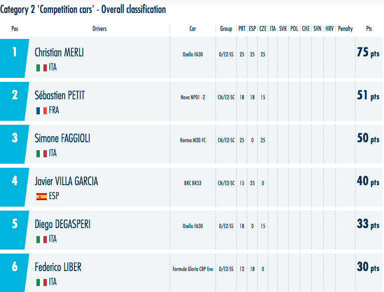 classement championnat d'Europe catégorie 2