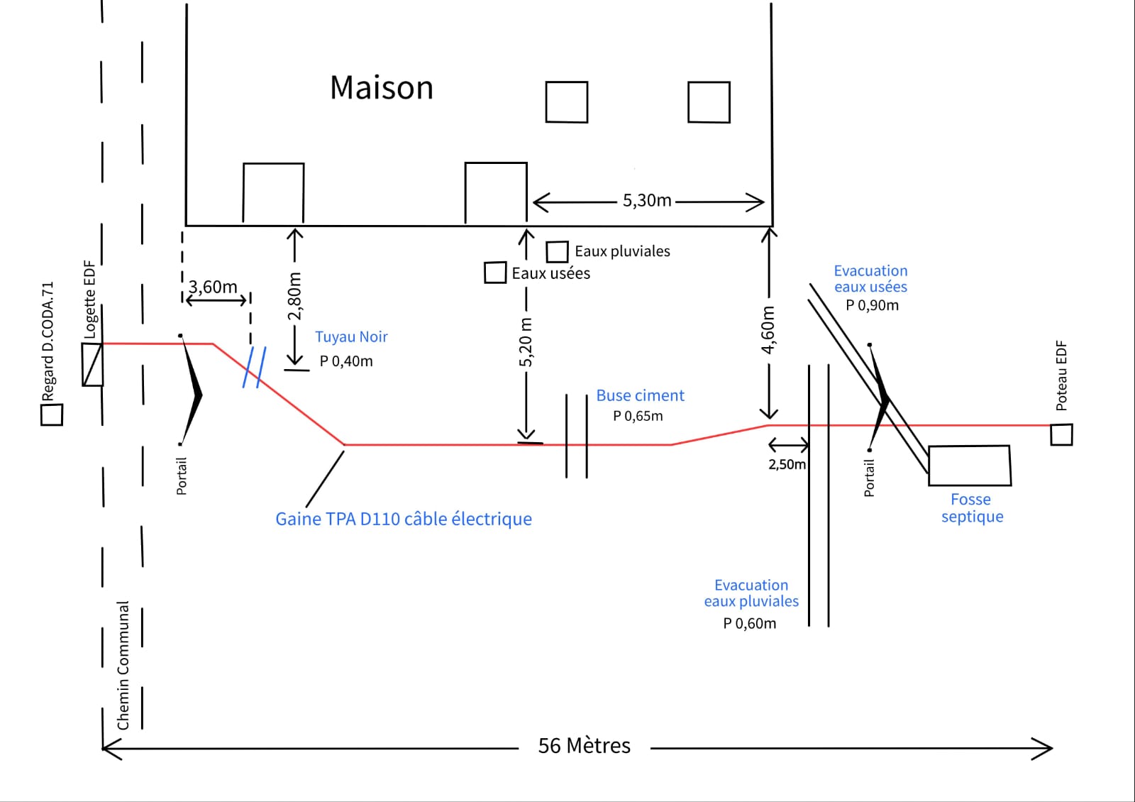 c'était une promesse que j'avais donné à la propriétaire (les travaux ont été exécutés dans une propriété privée) donc le minimum était de lui faire un plan des divers réseaux