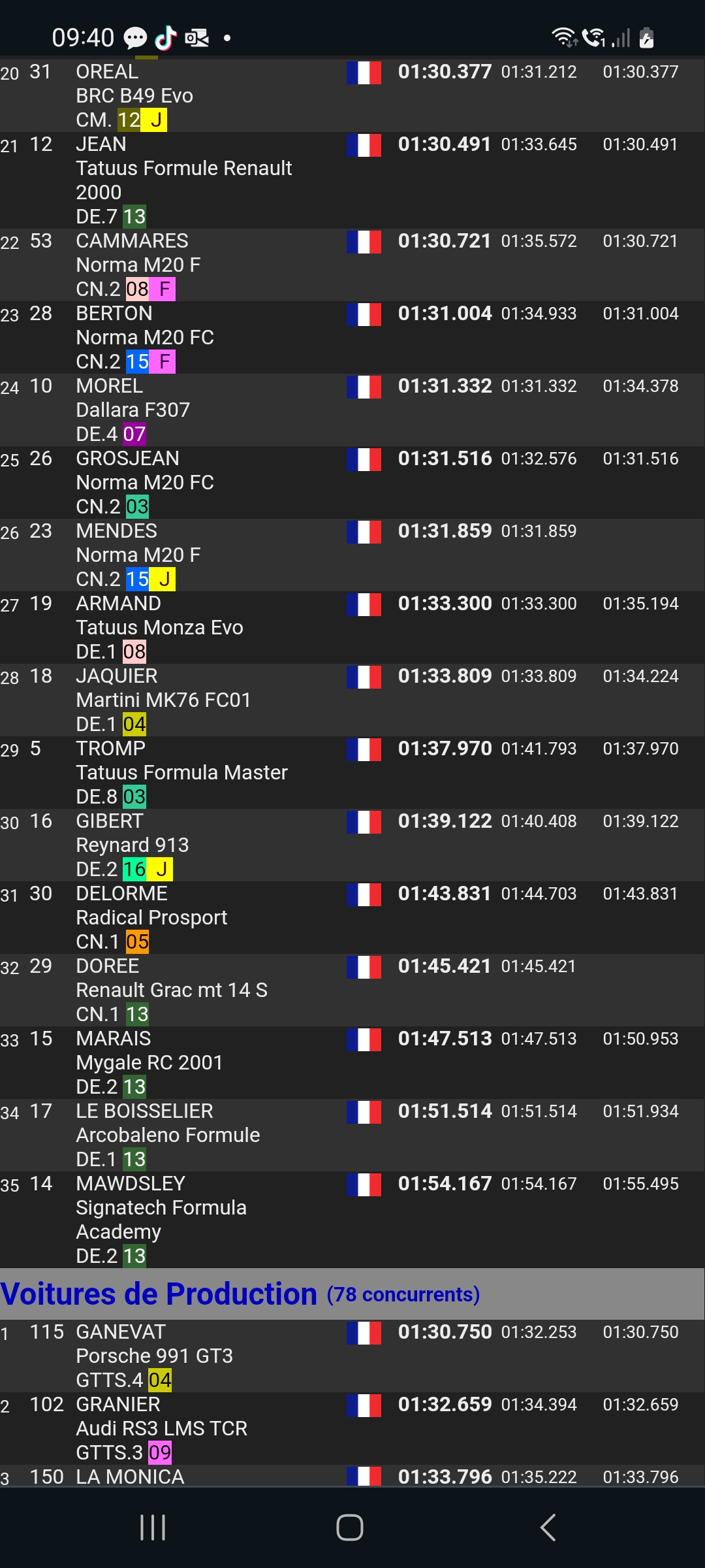 Le nouveau bitume ne va pas du tout mais bon on garde la première place du N1 toute la journée d’essaie avec des pneus avon qui ont 9 ans..