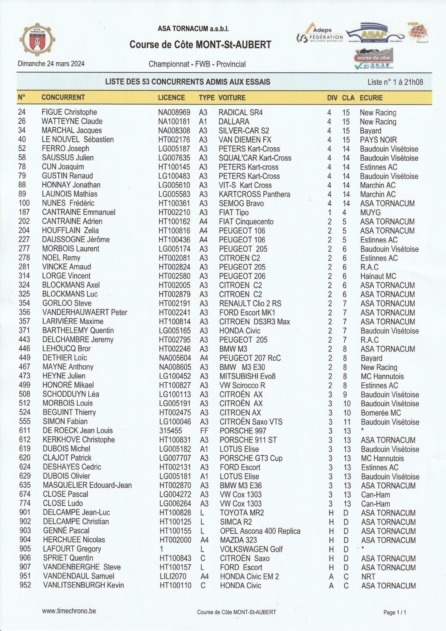 Attention, avec plus de 90 engagés ASAF et une petite trentaine en RACB, nous sommes très proches du nombre limite. Certains n'étant pas encore en ordre de paiement, une liste de réserve sera mise en place si besoin.