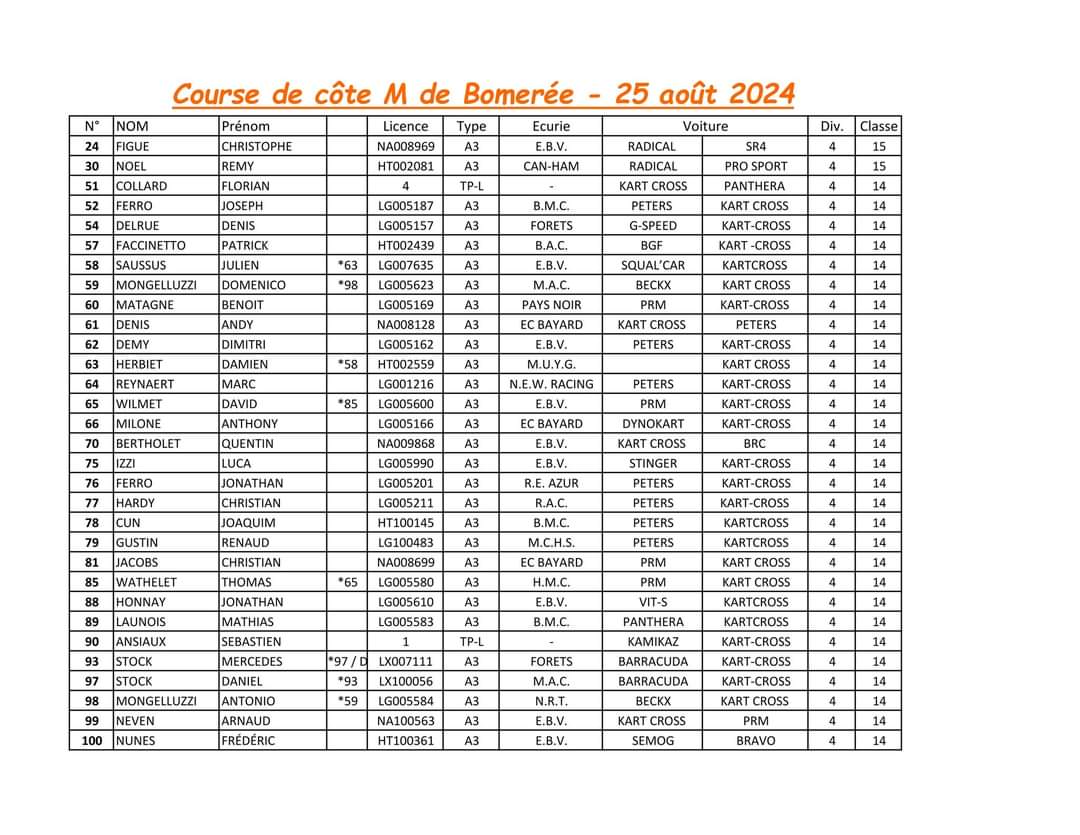 Résultat final de la Course de Côte de l'M de Bomerée 2024
