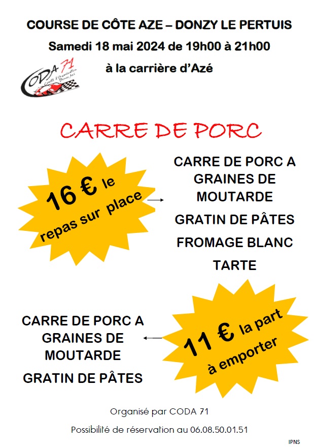 Possibilité de réserver des repas pour le samedi soir au 06.08.50.01.51 (nous vous conseillons de bien penser à réserver: les quantités sont limitées!).