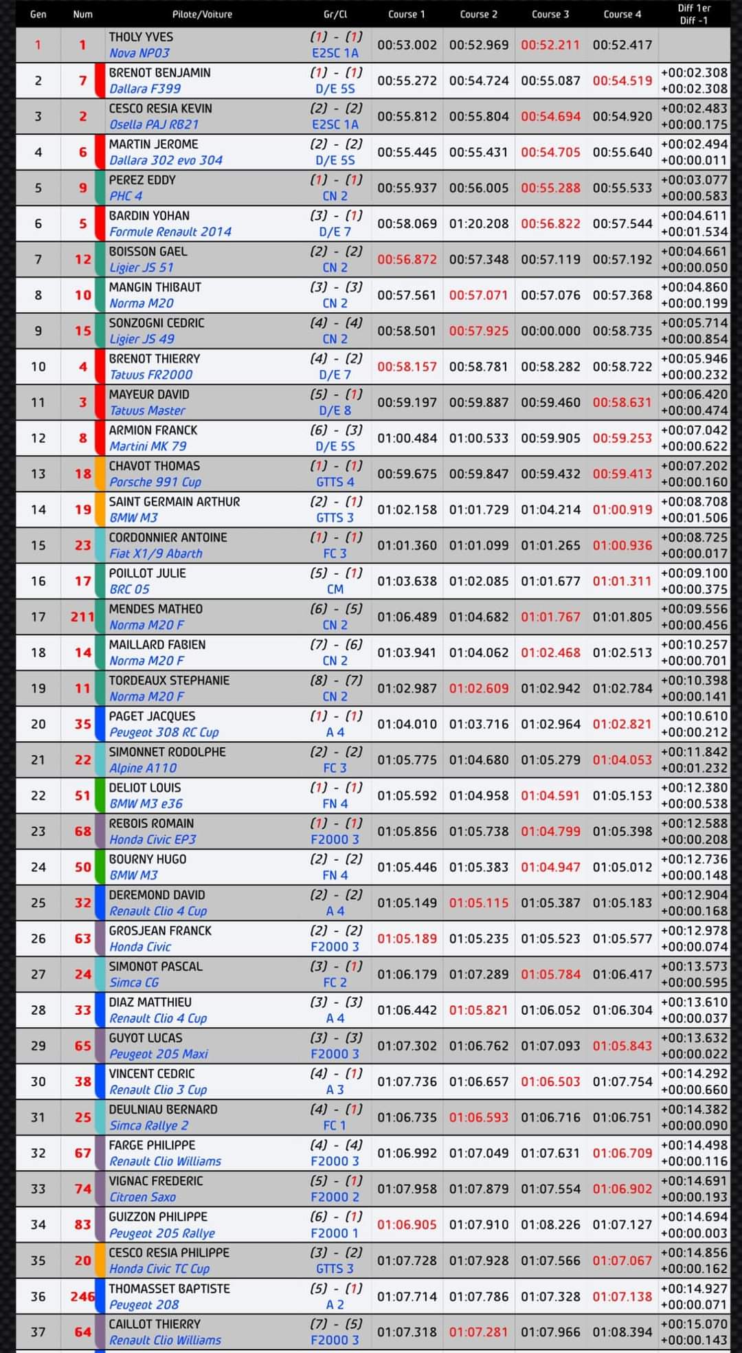Tout d’abord un chrono ⏱️ inattendu lors des essais. Puis s’en ai suivi une progression constante lors des 4 manches de courses pour descendre en 1:08:336.