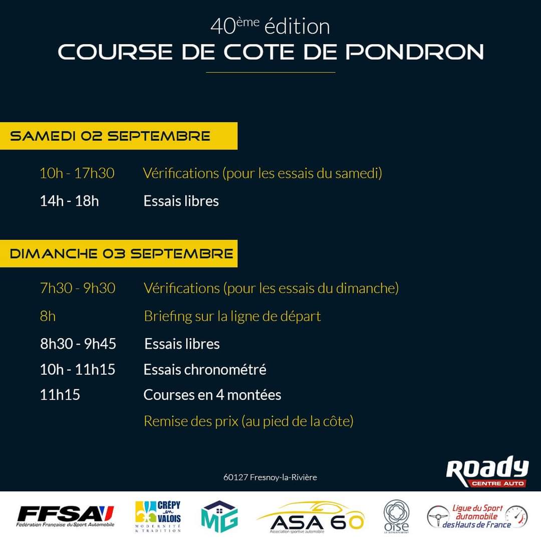 Retrouvez le programme de ce week-end du 𝟮 & 𝟯 𝘀𝗲𝗽𝘁𝗲𝗺𝗯𝗿𝗲 𝟮𝟬𝟮𝟯 de la Course de côte de Pondron 🏁 pour sa 40ème édition.