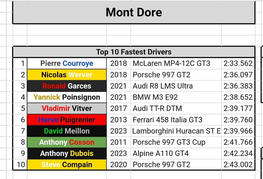, le jeune homme venant des circuits PIERRE COURROYE, a établi il y a 6 ans le meilleur chrono à MONT DORE avec le MCLAREN MP4 12C GT3. #HillClimb Infos : Ricard Suaña